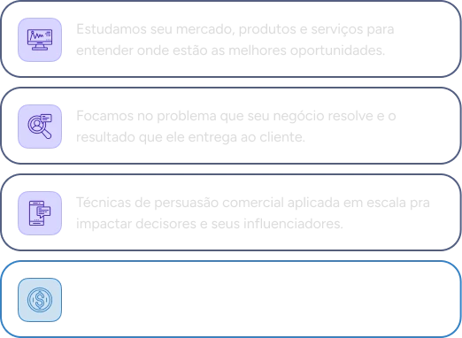 Identificamos e engajamos potenciais clientes, entregando leads quentes ao seu time.