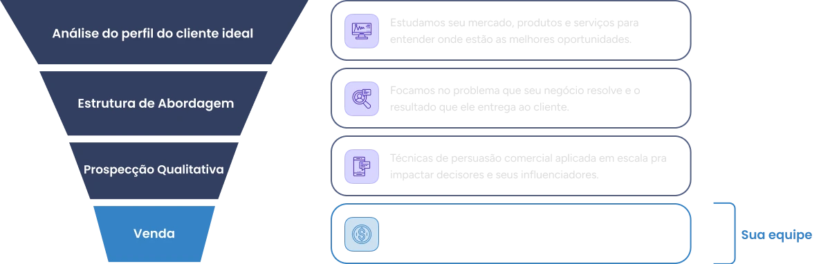 A prospecção via LinkedIn É uma forma prática, profissional e extremamente eficaz de gerar oportunidades B2B todos os dias. Com uma abordagem estratégica, pesquisamos perfis qualificados, iniciamos conversas relevantes e conduzimos potenciais clientes até seu time comercial.